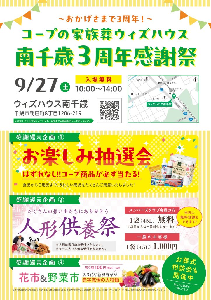 コープの家族葬ウィズハウス南千歳 3周年感謝祭